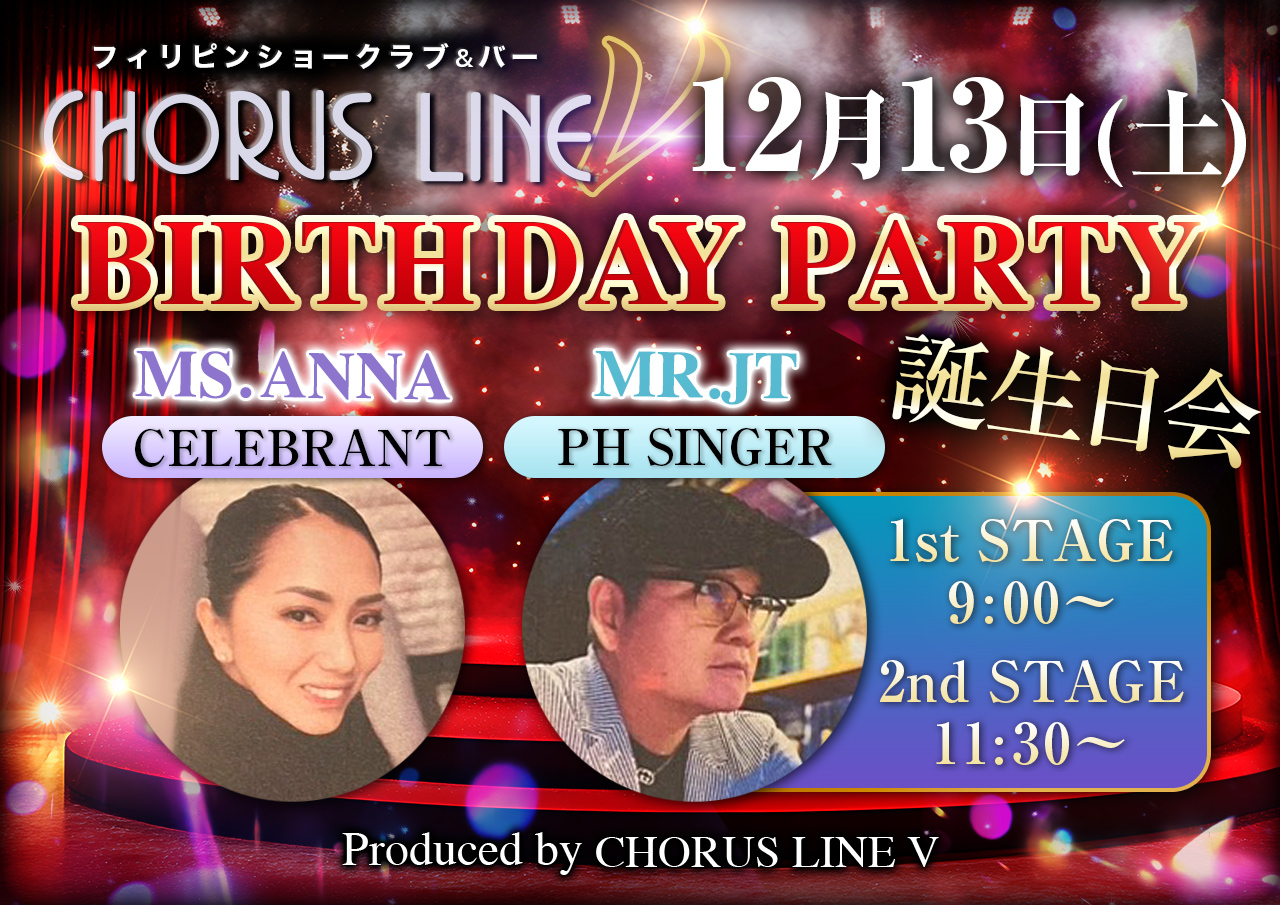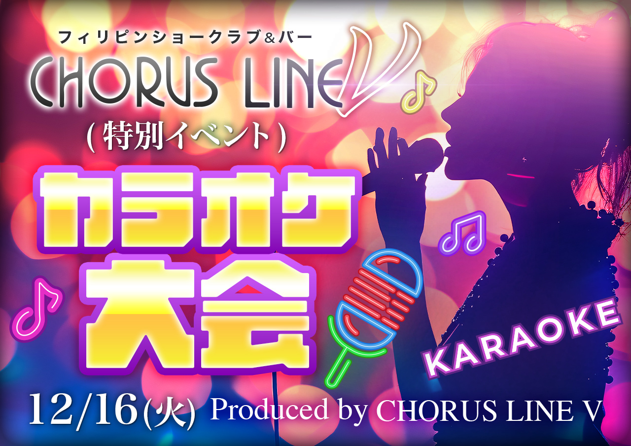 神奈川県厚木のフィリピンパブ『CHORUS LINE V(コーラスラインV)』は、おひとり様でも団体様でも、楽しく飲めるお店です!駅から徒歩1分の好立地、フリー4,000円とコスパ良し!イベントも多数開催!可愛いフィリピーナとの楽しいひとときをお過ごしください。